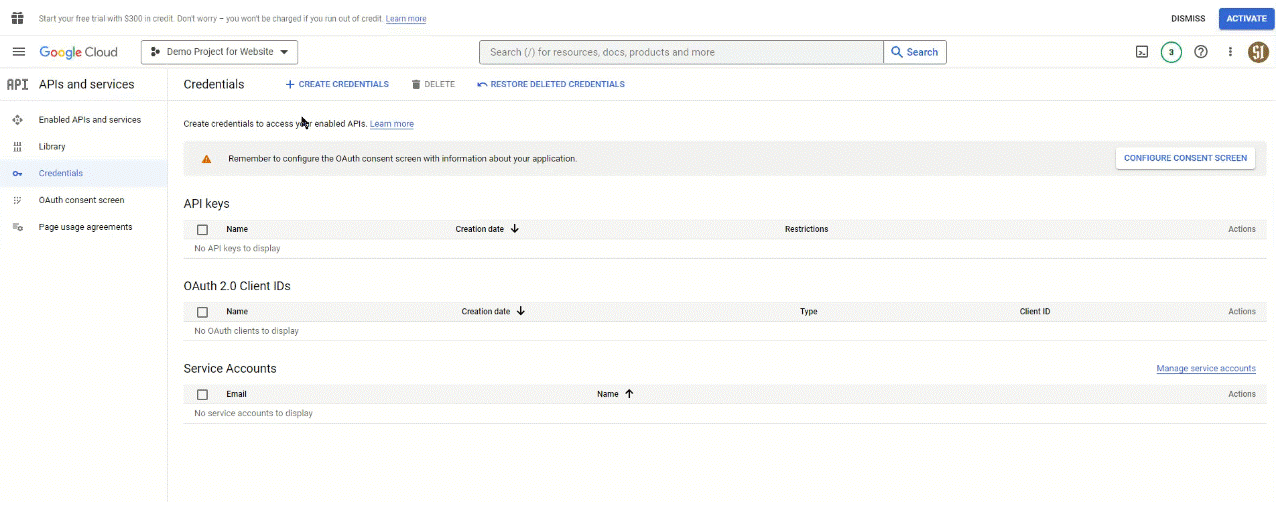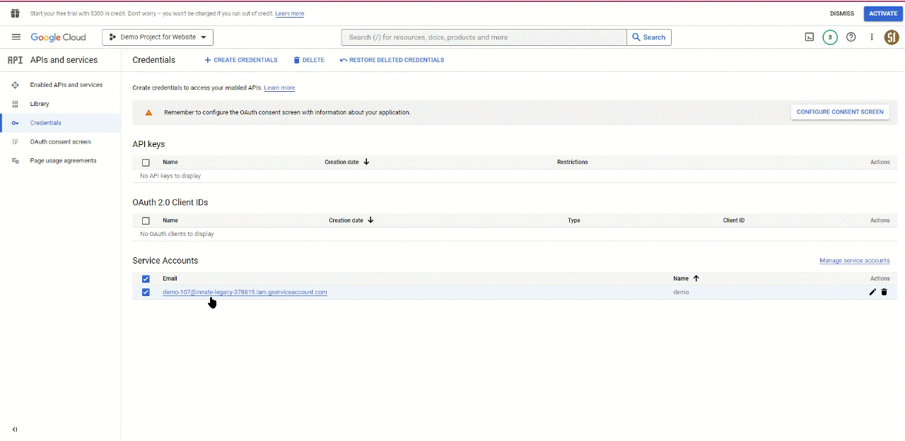 · Go into those credentials and create a JSON key. Save that file into the directory where you are running your Python code and make a note of the name. Moving forward, we will refer to it as CREDENTIALS.json